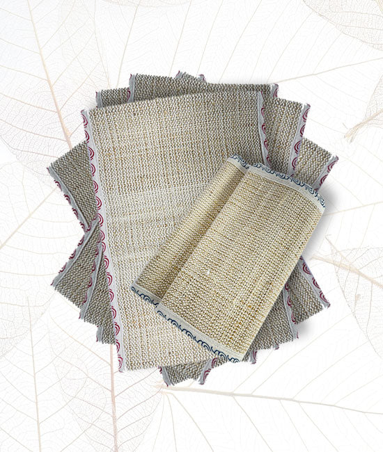 Elevate your dining experience with our exquisite Bhimal Fiber Dinner Runner Set, crafted from traditional handloom Bhimal fabric. This unique and eco-friendly table runner set adds a touch of natural sophistication to your dinner parties, while also promoting sustainable living.